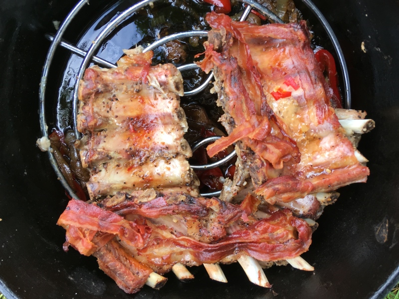 - Schälrippchen mit einem Gitter von den Beilagen trennen.