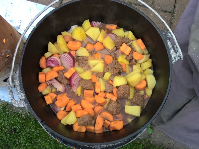 - Dann das Gemüse zugeben und weitere 1,5 Stunden kochen, bis alles weich ist.