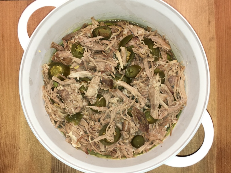 - Pulled Pork mit Jalapeños mischen und ebenfalls einfüllen.