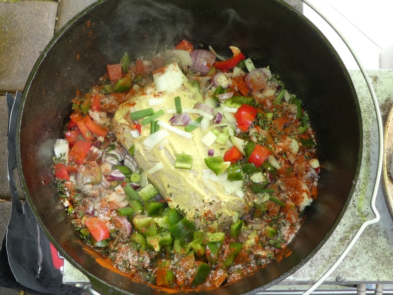- Alle restlichen Zutaten in den Dutch Oven geben.